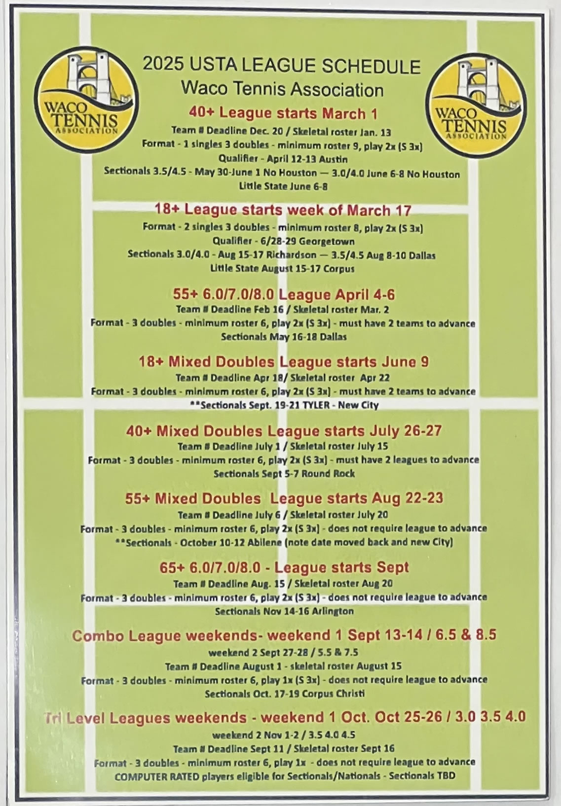 Click here for 2025 Sectional Schedule